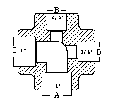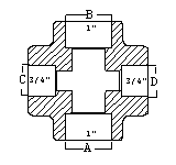 Cross![]() Reducing on both outlets (1 x 1 x 3/4 x 3/4) |