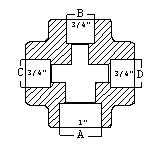 Cross![]() Reducing on one run and both outlets (1 x 3/4 x 3/4 x 3/4) |