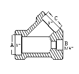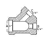 Lateral![]() Reducing on one run and branch (1 x 3/4 x 3/4) |