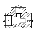 Tee![]() Reducing on outlet (1 x 1 x 3/4) |